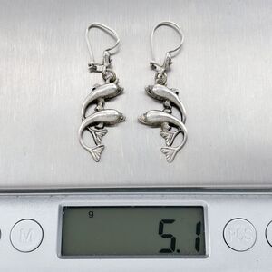 Vintage Sterling Silver 925 Dolphins Swimming Dangle Earrings