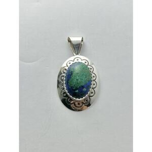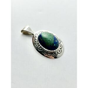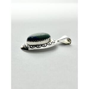 Vintage Sterling Silver .925 & Eilat Stone Navajo-Style Pendant, Signed LJM
