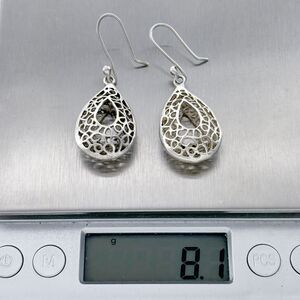 Title: Vintage Sterling Silver 925 Filigree Teardrop Dangle Earrings