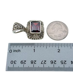Title: Vintage Sterling Silver 925 Garnet and Marcasite Pendant