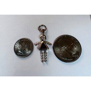 Articulated ball-bead arms and legs add movement and personality, making it an eye-catching accessory for collectors, charm bracelets, or necklaces. The pendant measures approximately 29.4 mm in length (including bail) and 15.2 mm wide, and weighs 2.3 grams, as shown in the listing photos.