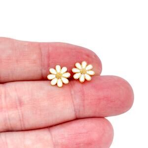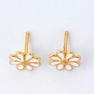 Charming vintage sterling silver 925 gold tone daisy flower stud earrings, lightweight and perfect for everyday wear or as a sweet floral accent.