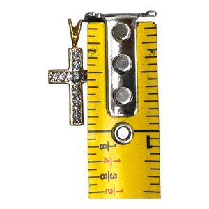 Vintage Sterling Silver 925 Gold Vermeil Cross Pendant With Faux Diamond Accents