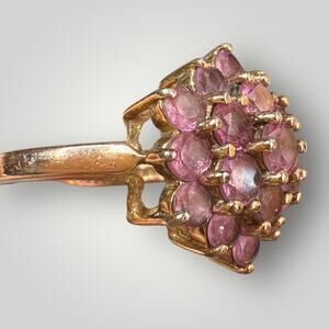 Vintage Sterling Silver 925 Gold Vermeil Pink Tourmaline Cluster Cocktail Ring Size 9