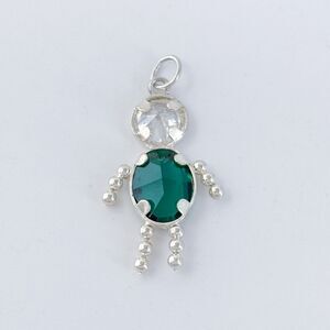 This vintage sterling silver 925 boy charm pendant is crafted in an adorable figure design featuring a sparkling green gemstone body and a cubic zirconia head. Its delicate size and unique style make it a perfect accessory for charm bracelets or necklaces. A meaningful gift for loved ones or a delightful addition to your jewelry collection.