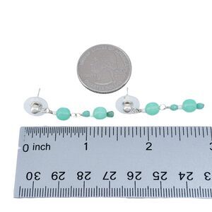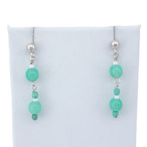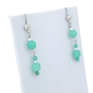 Title: Vintage Sterling Silver 925 Green Glass Beaded Dangle Earrings