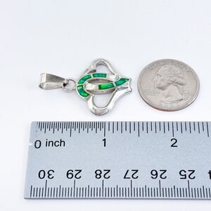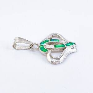 Title: Vintage Sterling Silver 925 Green Opal Inlay Heart Pendant