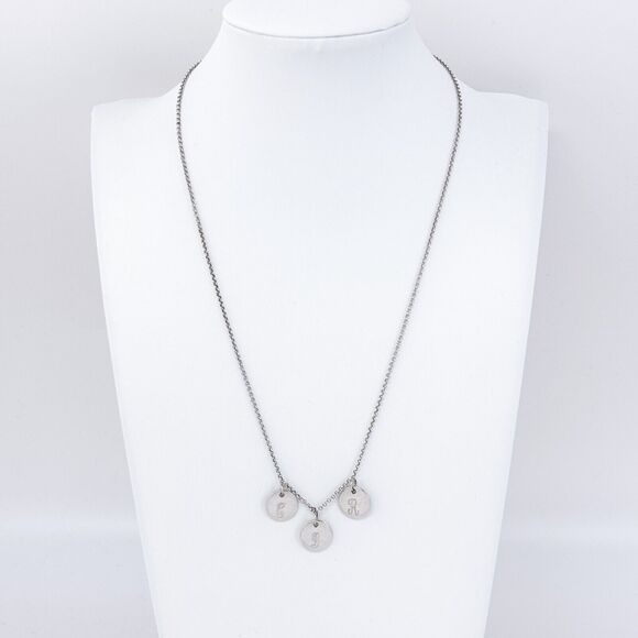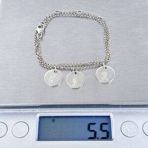 * Design: Delicate sterling silver chain with three round charms engraved with the initials "C," "D," and "R"