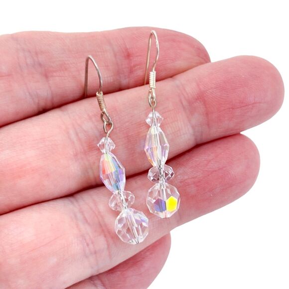 Vintage Sterling Silver 925 Iridescent Aurora Crystal Dangle Earrings