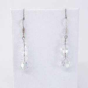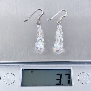 Title: Vintage Sterling Silver 925 Iridescent Aurora Crystal Dangle Earrings