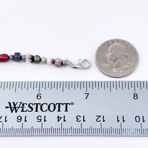 Title: Vintage Sterling Silver 925 Labradorite Pearl Bracelet 7"