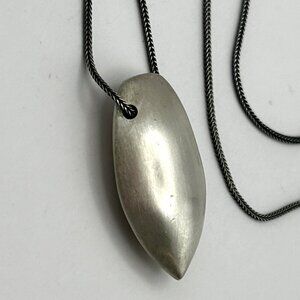 Vintage Sterling Silver 925 Modernist Teardrop Pendant Necklace 24in Snake Chain