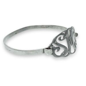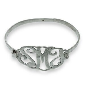 Vintage Sterling Silver 925 Monogram Cut Out SMJ Hook Bracelet 7.25"