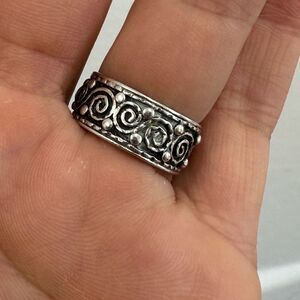 This is coming up a size 6 but because of the width it fits more like a 5.5. With thick bands you should always size up