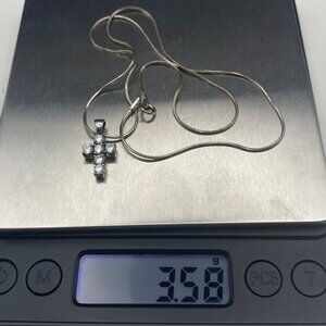Vintage Sterling Silver 925 Necklace Cross Prong Set CZ .75" Pendant 18" 3.58g