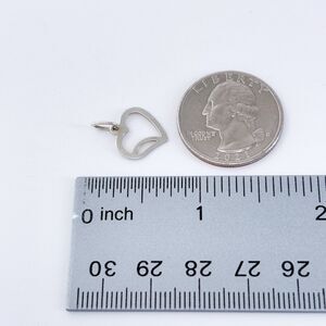 This minimalist sterling silver heart pendant features a charming openwork design, perfect for adding a touch of elegance to any chain or bracelet. Its petite size and lightweight construction make it ideal for everyday wear or layering. A sweet and timeless piece for any jewelry collection.