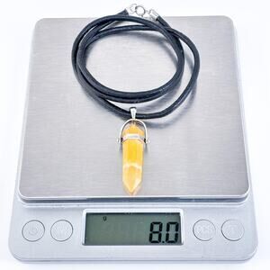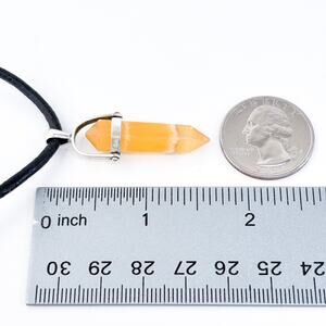 This vintage necklace pairs a genuine orange agate point pendant with a sleek black leather cord. The gemstone is bezel-set in sterling silver, creating a striking contrast and a grounding, boho-inspired look. A versatile piece perfect for casual wear, crystal layering, or spiritual styling.