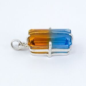 Title: Vintage Sterling Silver 925 Orange Blue Ametrine Emerald Cut Pendant