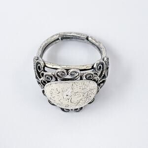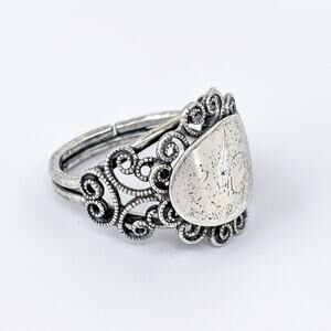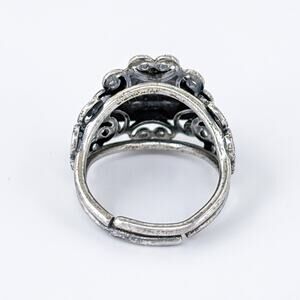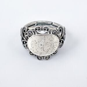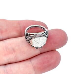 Vintage Sterling Silver 925 Ornate Blank Cartouche Ring Adjustable Size 5.5