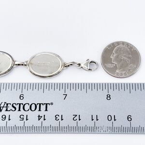 This unique vintage sterling silver bracelet features a series of linked oval plaques with engraved details, offering a personalized and timeless design. The 7.75" length makes it comfortable and versatile for everyday wear or as a special keepsake. Its secure lobster clasp ensures ease of wear and reliability.