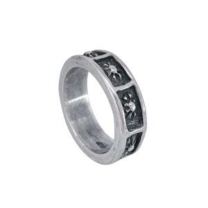 Keywords: sunburst ring, vintage silver band, artisan jewelry, oxidized details, unique design