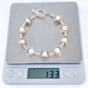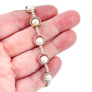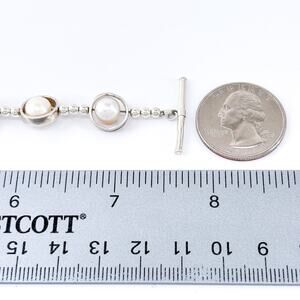 Vintage Sterling Silver 925 Pearl Link Bracelet w/ Bent Toggle Bar 7.5”