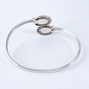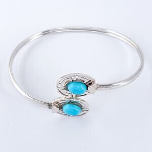 Elegant vintage bypass cuff featuring twin oval Persian turquoise cabochons set in geometric openwork bezels—sleek and vibrant with timeless southwestern charm.