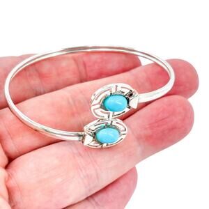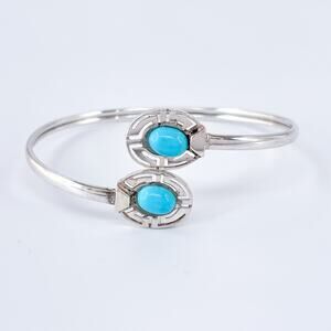 Vintage Sterling Silver 925 Persian Turquoise Bypass Cuff Bracelet 6.5"