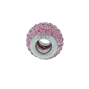 Title: Vintage Sterling Silver 925 Pink Crystal Spacer Bead Charm