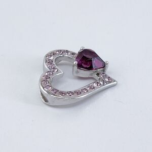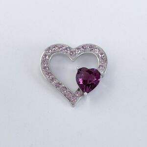 Title: Vintage Sterling Silver 925 Pink Cubic Zirconia Heart Pendant