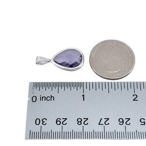 Title: Vintage Sterling Silver 925 Purple Faceted Glass Teardrop Pendant
