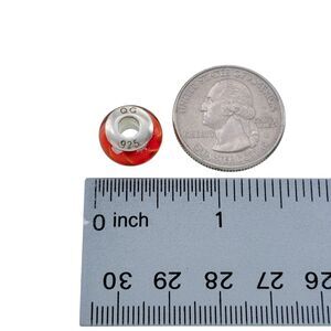 Title: Vintage Sterling Silver 925 Red Glass Charm Bead