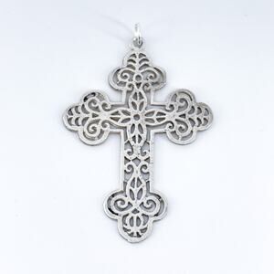An ornate vintage cross pendant in sterling silver 925 with intricate filigree detailing and flor