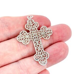 Vintage Sterling Silver 925 Religious Filigree Cross Pendant