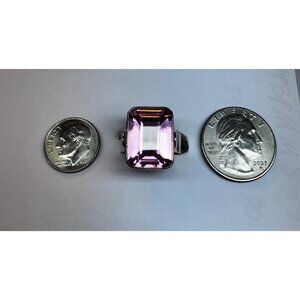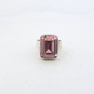 Vintage Sterling Silver 925 Ring w/ Large Pink Emerald-Cut Stone Size 6.5