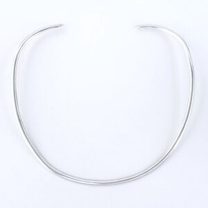This vintage sterling silver collar necklace features a sleek, smooth design with a firm but flexible structure that hugs the neckline beautifully. A timeless and elegant piece perfect for showcasing a pendant or wearing solo for a minimalist statement. Ideal for formal occasions or elevated everyday style.