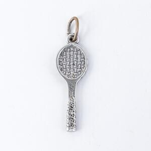 This vintage sterling silver tennis racket charm features detailed string texture and a wrapped handle design. A perfect keepsake for tennis lovers, it can be worn as a pendant or added to a charm bracelet. Lightweight yet full of sporty character, it makes a charming gift or collector’s piece.