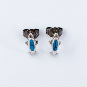 Vintage Sterling Silver 925 Turquoise Dolphin Stud Earrings