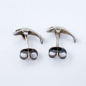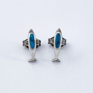 Title: Vintage Sterling Silver 925 Turquoise Dolphin Stud Earrings