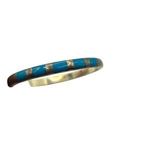 Vintage Sterling Silver 925 Turquoise Inlay Bangle Bracelet