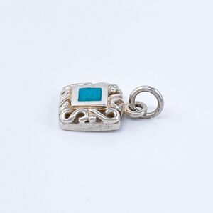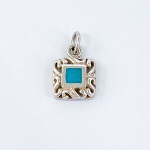 Title: Vintage Sterling Silver 925 Turquoise Square Filigree Pendant