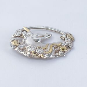 Title: Vintage Sterling Silver 925 Vermeil Floral Unicorn Pendant