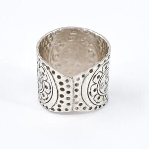 Bold vintage sterling silver 925 wide band ring featuring intricate boho-style circular and dotted patterns for a statement look.
