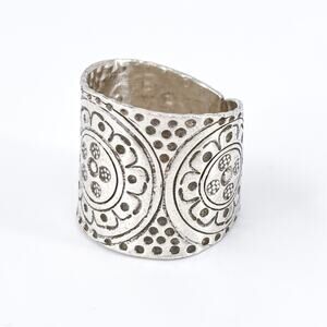 Vintage Sterling Silver 925 Wide Boho Patterned Ring Size 7.75