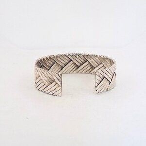 Vintage Sterling Silver 925 Woven Cuff Bracelet 5.75” Heavy Estate Jewelry