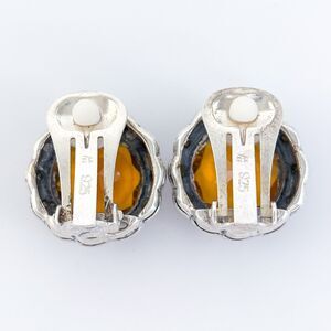 Title: Vintage Sterling Silver 925 Yellow Glass & Marcasite Clip-on Earrings