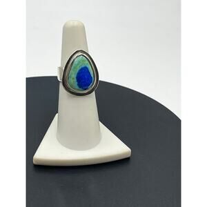 Vintage Sterling Silver 925 Azurite Malachite Teardrop Ring Sz 6 Wide Band 8.6g