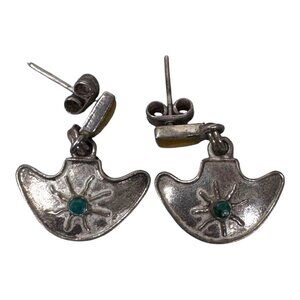 Vintage Sterling Silver 950 Mexican Artisan Earrings Turquoise Sun Starburst