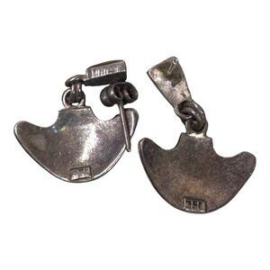 These vintage sterling silver earrings feature a unique Mexican artisan design with a turquoise inlay sun motif. Their distinctive look adds a touch of cultural elegance to your style. Lightweight and easy to wear, they are crafted from high-quality 925 silver, making them a durable addition to your jewelry collection.