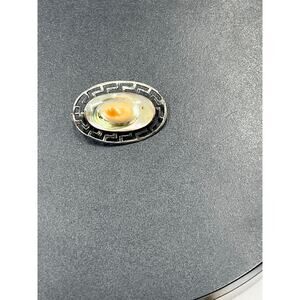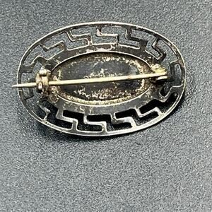 Vintage Sterling Silver Abalone Shell Brooch Pin Antique Greek Key Border